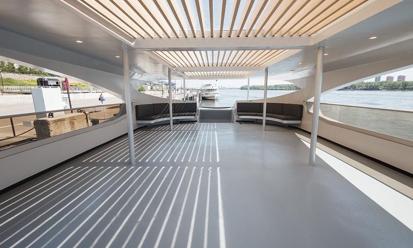 Комфортабельный катамаран рассчитан на 130 пассажиров и имеет две палубы. На главной палубе находится основной салон с мягкими креслами и столиками, а на верхней открытой палубе можно комфортно любоваться красивыми видами на свежем воздухе. Судно оборудовано баром, кондиционером, розетками для зарядки гаджетов, а также туалетными комнатами. Утепление корпуса и система обогрева обеспечивают комфортную температуру в салоне. Благодаря живописным видам на город вы получите отличные фотографии с борта электрокатамарана, которые сохранят важный день навсегда!