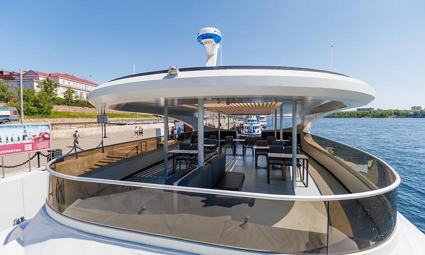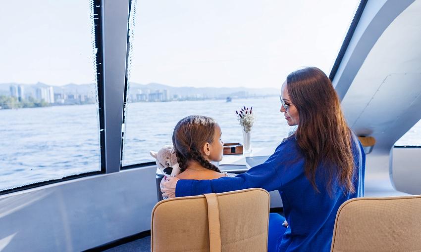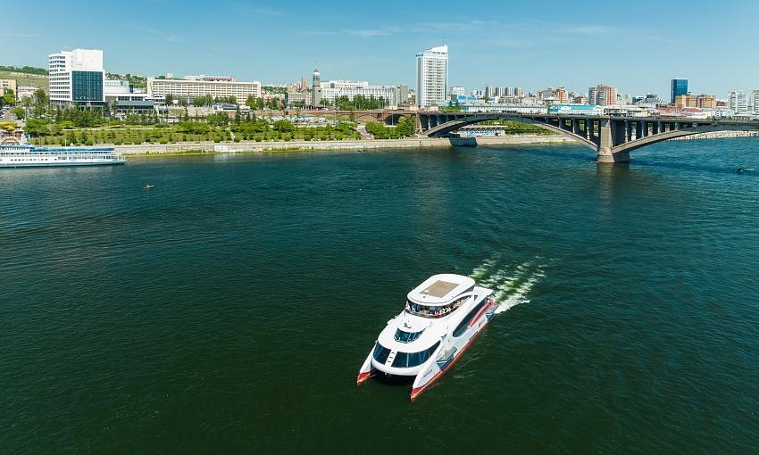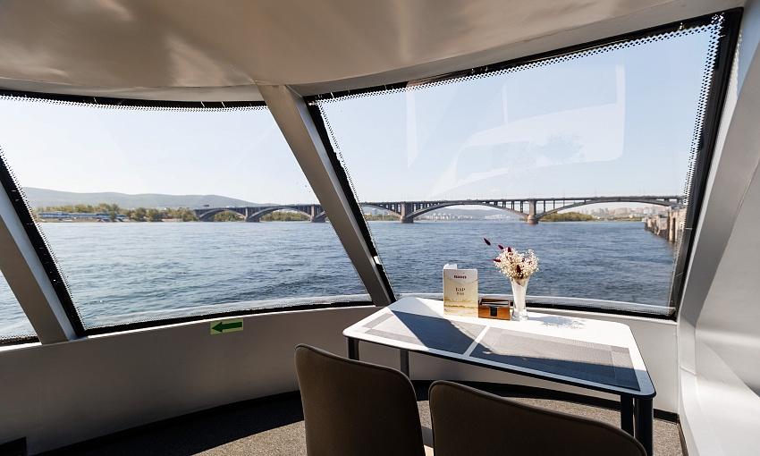 Во время речной прогулки на электросудне «ЭкоходЪ» перед Николаевским мостом вы увидите спортивно-зрелищный комплекс «Платинум Арена Красноярск».