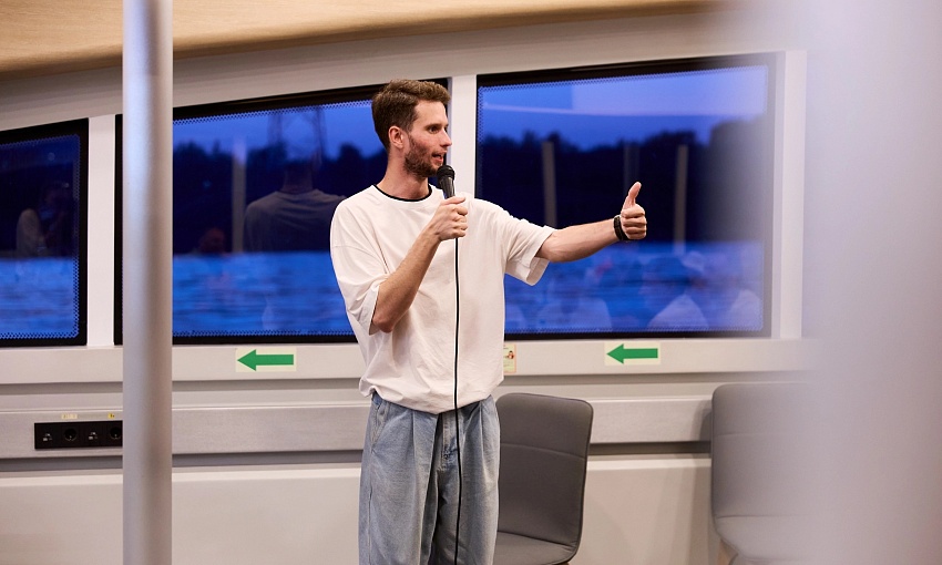 Представьте себе: вы заходите на уютное судно, поднимаетесь на крытую палубу и ощущаете предвкушение приключения. Пока электрокатамаран «ЭкоходЪ» мягко движется по живописному Енисею, на сцене «Стендап Сибирь» начинаются выступления талантливых комиков. Их остроумие и искромётный юмор создают атмосферу веселья и лёгкости, а окружающая природа — вода, зелень и бескрайние горизонты — добавят особого колорита вашему вечеру.